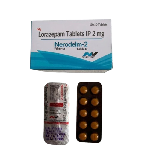 Nerodelm Lorazepam 2 mg Tablets is a prescription medicine used to treat symptoms of short term anxiety and anxiety disorders. It helps to decrease the abnormal and excessive activity of the nerve cells and calms the brain.